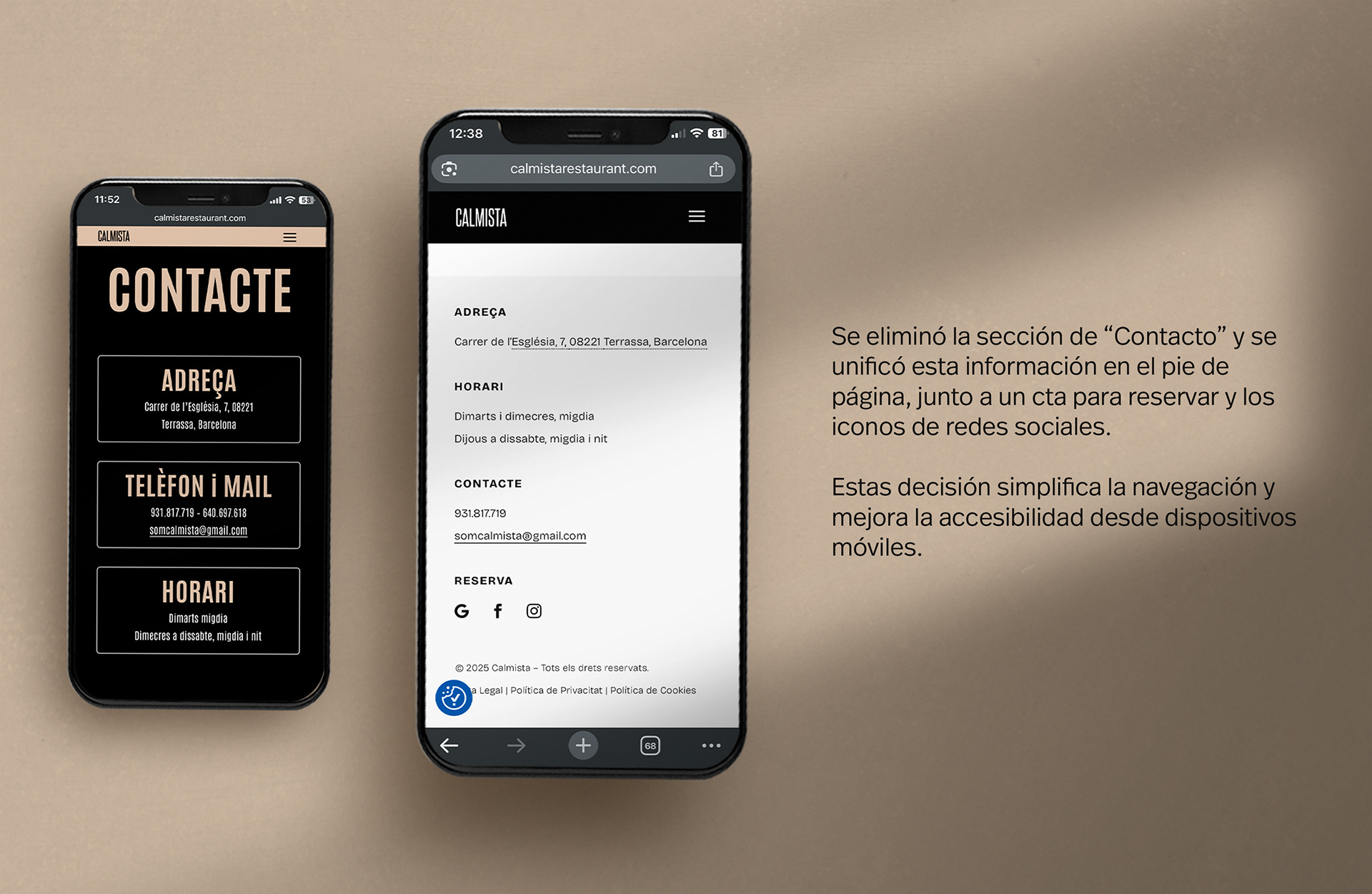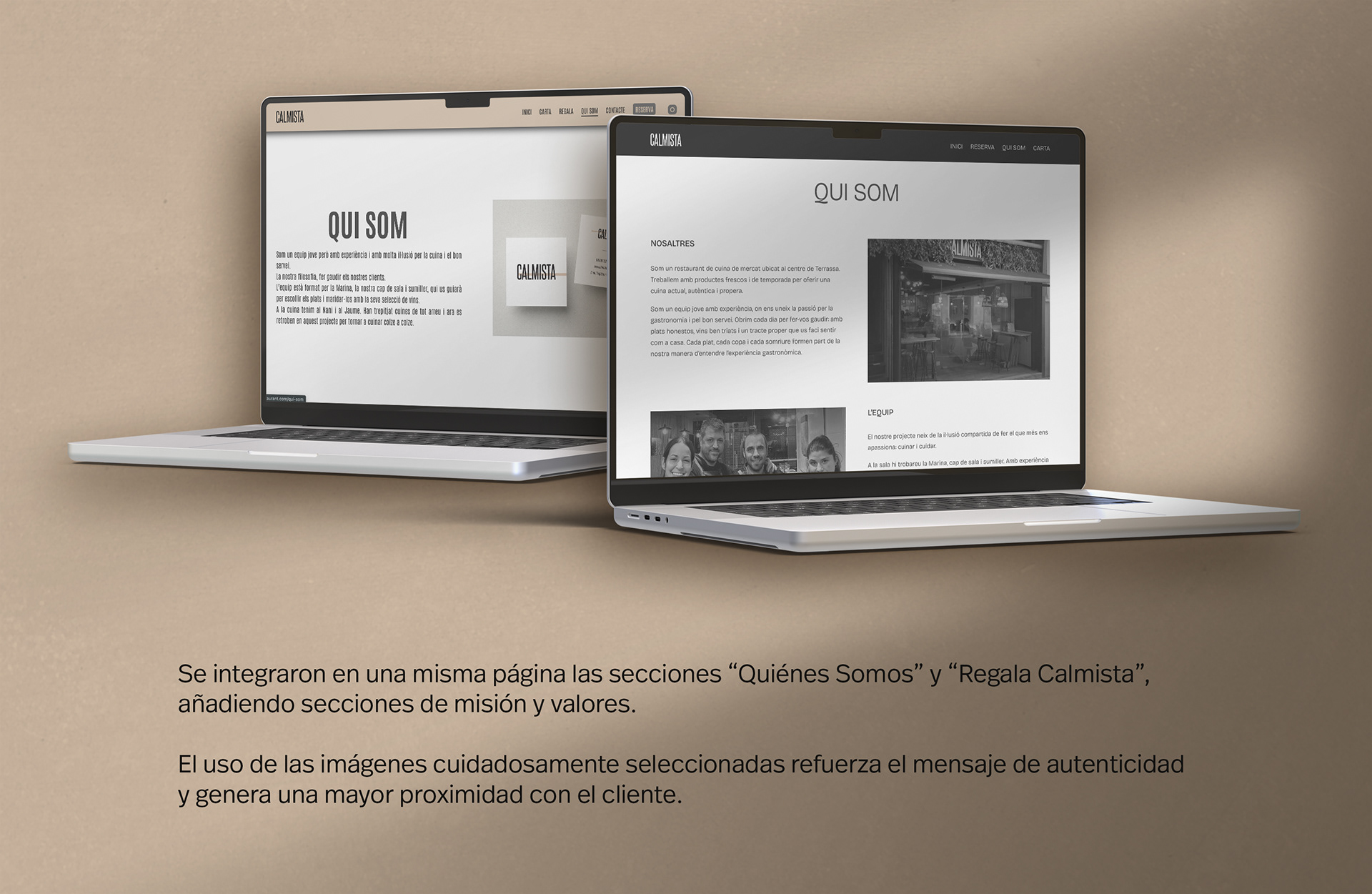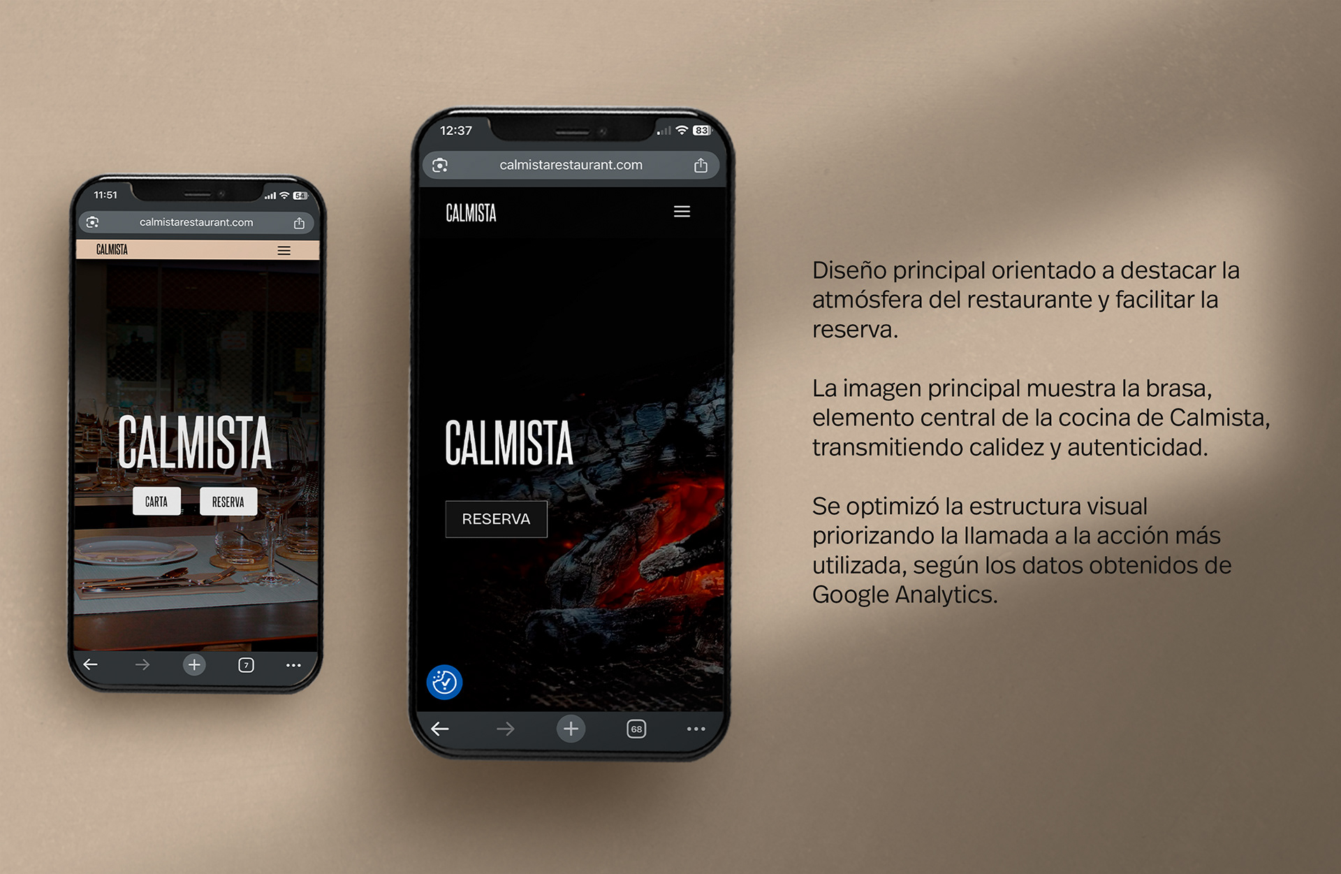 Diseño de un sitio web responsive para Calmista Restaurant, un espacio gastronómico que busca transmitir calma, elegancia y proximidad. Me encargué de la arquitectura visual del sitio, el análisis del comportamiento de los usuarios mediante Google Analytics y la selección tipográfica, asegurando coherencia con la identidad y objetivo de la marca.